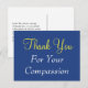Denna klassiska tack-vykortdesign har meddelandet "Tack för din medkänsla" på framsidan, tillsammans med ett personligt meddelande på baksidan. Det kan användas för att visa tacksamhet till någon som har gjort en speciell handling.