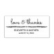 Denna vackra gummistämpel med vinranka och ett hjärta som understryker orden "kärlek & tack" i modernt kalligrafiskriftformat och detaljer i modernt sans-serif-teckensnitt.