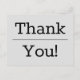 Denna klassiska, traditionella tack-vykortdesign har meddelandet "Tack!" på framsidan, tillsammans med ett anpassningsbart meddelande på baksidan. Det kan användas för att visa uppskattning till någon som har gjort något trevligt.