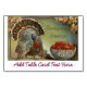 Vintage bild om en kalkon som står bredvid en skål med röda äpplen och ord Thanksgiving Hälsning. Färg-projektet har varma jordtoner. Den här designen är baserad på en offentlig domänavbildning från Nancy Oram-samlingen.