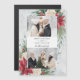 Den här klassiska och traditionella designen innehåller två fotomallar med centrerat tomt inslag för din anpassning till vattenfärgen stil poinsettias, vit ros och gräs på en mistig grått-bakgrund.