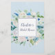 Den här klassiska möhippan med vita blommor är perfekt för en dusch i vår bröllop. Blommigten för elegant har mjukt elfenben och vit ros, peonier och krrysanthemum med beröring av blommor med halvkullblått vattenfärg och grönt bladverk. Anpassa baksidan av kortet med namn i bruden och duschdatumet.