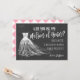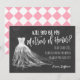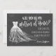Vill du vara min brudtjänsteflicka kort med en brudklänning handritad mot en svart tavla bakgrund.