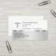 Klassmedicinska affärskort med smart design som innehåller en medicinsk symbol för silver färgad som har ett metallutseende och silver färgadens bakgrundsdesign inslag. Anpassa texten så att den blir din egen och dela ut dina affärskort i professionell stil. Designad för ett doktor-kontor, en sjuk- eller hälsoförsäkring i agent.