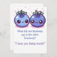 Detta är ett sött Alla hjärtans dag-kort för klassrummet, perfekt för skolan på Alla hjärtans dag. Det är ett roligt skämt som kommer att sprida ett leende eller två på Alla hjärtans dag. "Vad sa blåbäret till det andra blåbäret?" "Jag älskar dig bär mycket!".