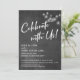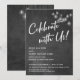 I denna fina bröllupstemanade design har jag använt ett elegant modernt kalligrafiskt teckensnitt för att skapa en vit grafisk typografi-overlägg med texten "Fira med oss!". På båda sidor var bakgrunden täckt med en bild som visar en strukturerad svart tavla. Ovanpå det ligger en grupp runda vita vintage Edison-lampor. Fyll i mallens tomma fält med dina uppgifter för att anpassa designen. Alla lager lades till separat och lämnades olåsta för att ge dig maximal kontroll över designen. //