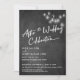 I denna fina bröllupsinspirerade design har jag använt ett elegant modernt kalligrafiskt teckensnitt för att skapa en vit grafisk typografi-overlägg med texten "After the Wedding Celebration". På båda sidor är bakgrunden täckt med en bild som visar en strukturerad svart tavla. Ovanpå det ligger en samling runda vita vintage Edison-lampor. Fyll i mallens tomma fält med dina uppgifter för att anpassa designen. Alla lager lades till separat och lämnades olåsta för att ge dig maximal kontroll över designen. //
