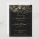 Klasssvart och guld ro blommigt bröllop inbjudningar
