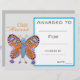 Ett modernt klasscertifikat för snyggt med söt perfekt för fjäril-bilder för att uppmuntra ett ungt student. Du kan göra egna skrivor. En underbar resurs för alla typer av klasslärare.