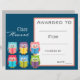 Ett modernt klasscertifikat för snyggt med snygg perfekt för att läsa uggla-bilder för att uppmuntra ett ungt student. Du kan göra egna skrivor. En underbar resurs för alla typer av klasslärare.