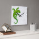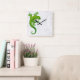 Klättra den gröna geckoen på en vitvägg fyrkantig klocka