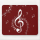G Clef bland musik på djupt rött. Mörkens röda bakgrund gör att ljusa vita anteckningar dyker upp. Vit- och maronmusikdesign.