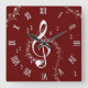 Klimataktiska G Clef Music Red Roman Numerals Fyrkantig Klocka