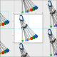 En uppsättning ljusa klättertråd i färgad sten, avsvällda i en triangel mönster. Bakgrunden till många produkter med den här designen är en grumlig scen i himlar.