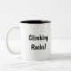 Bild av klimatutrustning som fångas i öga på en bräda utanför redskapshuset. Röd hjälm och svart isax bland en färgstark visning av karabinörer. Med slogan "Klimata Sten!" eller välj "anpassa" för att lägga till ditt eget.