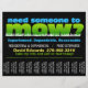 Iögonfallande informationsblad för att hjälpa dig hitta arbete och tjäna extra pengar inom trädgårdsskötsel. Fet stil, ljusa bokstäver som fångar uppmärksamheten på ett unikt sätt, " Behöver du någon som klipper gräset?" Anpassa texten i denna mall för att anpassa den till dina specifika behov. Klipp mellan numren så att folk kan riva av och ringa när det passar dem. Häng upp denna informationsblad i närbutiker som t.ex. delikatessbutiker, bibliotek, mataffärer, parker, pizzerior osv. Det är nu den perfekta årstiden för att marknadsföra ditt företag!