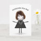 Söt klistergubbtjej med hår, blå glasögon, sneakers, prickig klänning och pärlhalsband på vit bakgrund för att tänka på dig.