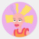 En excentrisk tecknad figur med slätrakad huvud, fyra taggiga gula hårtofsar och krispa vita ögon. Rena, platta färger utan kontur och en genomskinlig bakgrund gör det perfekt för bärbara datorer, vattenflaskor, skissböcker, mobilskal och mer.