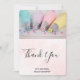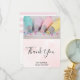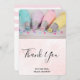 Tack för att du har ett kort med ett foto för söt pastel-färgad. Med dekorationskakor i pastellblått, rosa, persika och gult. Sätt på ett trä bord med lite färglöst pärlor.