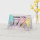 Tack för att du hälsar på kortet med ett foto för söt pastellfärgad. Med dekorationskakor i pastellblått, rosa, persika och gult. Sätt på ett trä bord med lite färglöst pärlor.