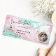 Boardingkortet Biljett Guld Flygplan i för Beach-sängen Spara datumet med hjärta och flygplan med en unik pastellfärgad världskarta. Lägg till ditt foto
