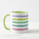 Ett monogram stripe mugg som dekoreras med målningslag som görs i mjuka nyanser av vattenfärg i vågrät mönster.