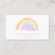 Ett söt trendig modernt femininin-affärskort med en vattenfärgsfärgad handmålad pastellregnbåge och ett chic-typografiskt skript på en vit bakgrund. +++++++++ Lämpligt för barnhem i insida, barndaghem, barndaghem, barnkläder, målare, lärare och kreativ.