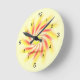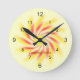 Pinhjulets konstruktion i rött, orange och gult, på blekens gult, sitter bakom siffrorna på klockan ansikte. Siffrorna 12, 3, 6 och 9 är större än de återstående siffrorna. Anpassa med text (företag eller familj namn eller ?). Ytterligare anpassning kan göras genom att anpassa/redigera bakgrunden färg (blekens gult)