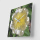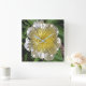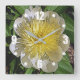 STORA RUNDKLOCK, GRÅTT HÄNDER, VITA NUMMER, HAR EN VITE PERONY MED GULT CENTER. DIGITALA EFFEKTER SOM ANSÖKS FÖR ETT PAINTERLY-FÖRSÖK.