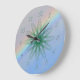 Grönten spiralade i mitten med ljust grönt tal. Konstruktionen sitter framför regnbågsbandet på grått och blå himmel.