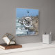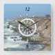 Fartygsratten är överlagd på ett fotografi av vågor som kraschar vid foten av en klippig klippa.