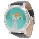 Denna klocka för läder för huset för utrymmeåldertecknaden är riktiga en retro älskare dröm- kom. Den minimalist konstdesignen presenterar ett aquastenhus med stort, påfågelblåttfönster. Hänga från det atom- och att luta, exponerar det orange tak, en gul sputnik lätt fast tillbehör ytterdörren. Den tog paus röda ytterdörren med starburstdörrhandtaget är beautifully offset vid de vertikala gröna wood plankorna av den yttre entrywayen. En grå stenväg klipper över den pristine gräsmatta, som visas turkos i månsken. Bak huset pekar en ro av ett högväxt som är tunn, träd till turkoshimmlen och vitsilhouetten av en fullmåne. Fördriva inget folk är synligt, på en nattnågot liknande detta, det kitschy hus invånare är antagligen hållande ögonen på nyheternafootage för insida av astronauten.