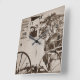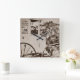 Den här väggklockan har ett vintage bild från ett gammalt postkort. Det ser ut som om det var en skymt av en häst- och buggy-postvagn från väg 1 i Connecticut.