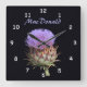 Lila som formas i blomman sitter i mitten av vita siffror. Namn i lila kan anpassas. Den svarta bakgrunden kan ändras. Underbar för familjen med skotskt ursprung.