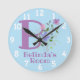Designen har monogram och namn med blommor på vardera sidan i en vattenfärgad pastellstil. Exempel namn är Belinda. Barnkammarklocka, barnens sovrumsklocka. Ändra namn som önskat för vem som helst med ett namn som börjar med B.