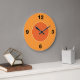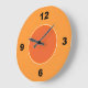 En enkel väggklocka med en ljusare bakgrund under stora svarta orangar som markerar 12, 6, 9 och 3 och en mörkare orange ansikte med en tunn vit kontur. För alla orangar. Klicka på Anpassa om du vill lägga till anpassningsbar, ändra färg för bakgrundsinformation med mera.