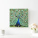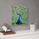 Påfågeln har alla "ögon" på tiden. Stående stolt har fågeln ljusgröna fjädrar accentuerade med de kungligt blåa mittpunkterna och huvud- och kroppsfjädrar i blått. Vita siffror med släppt skugga finns vid kanten.