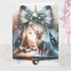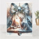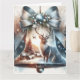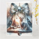 Juldkort med en klocka med landskap och renar