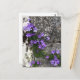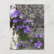 Klockblommor växer från en spricka i en vägg. Blå blommor mot en vägg. Blommor vykort.