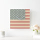 En rustik stil amerikansk Flagga dekorerar den här snyggtens väggklocka. Designen kommer från originalteckningen.