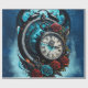 Klocket i oändlighetens mittpunkt. En nästan surrealistisk design, i centrum av denna visuella poesi är en stor, ornerad fickur, dess romerska siffror som är märkta på ratten som gamla hemligheter. De verkar viska historierna från tidigare epoker när de stannar kvar i tidernas tystnad. Bakgrunden är en uppsåtlig lek med virvlande blå och djupa mörk blått moln. Dessa moln verkar ha oändliga proportioner eftersom de varsamt vind runt klockan, ge det som ett mysterium.