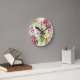 Vi kärlek den här väggklockan med den färgstarka variationen av vildblommor med vattenfärg, det är som en trädgård på din mur!