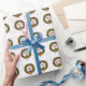 Monogrammade julomslag pappra med bilderna av grönt holly löv, röda bär, guld klockor och gräs twigs. Du kan ändra texten inuti källorna.