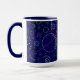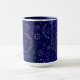 Vitstjärnor och andra klotter dansar över en midnatt blåttbakgrund.
