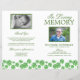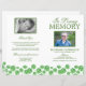 Irländskt budgetbegravningsprogram med en traditionell vit bakgrund, grönt vattenfärg klöver, ett foto av din borttappad nära ett, begravningsdetaljer, en obituary, serviceordning, information om väckningen, ett annat foto på baksidan och ett personlig tackkort. OBSERVERA: Denna kom som en platt biet av papper kvalitet måste du vika dem själv.