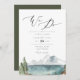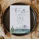 Den här bröllopsinbjudan har ett bohemskt vattenfärgsfärgsteckensnitt för bergsmålning och kalligrafi av elegant i sjö. Det här är perfektens inbjudan för alla säsonger.