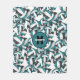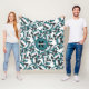 Det här coola laget färg volleyball fleece filtar för flickor har en mönster av stiliserade teal, svarta och vita volleybollar av varierande storlek som vrids varje gång på en anpassade vit bakgrund - volleybollar teal och svarta paneler blandas med en artsy, gigly blommönster - personifiera med idrottsmannens namn och monogram eller jersey nummer - av katz_d_zynes