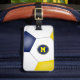 Det här fotbolls-temat för bagaget är helt enkelt designat med en enda abstrakt förstorad blå, guld och vit fotboll - personifiera med ett monogram på framsidan, adress på baksidan - av katz_d_zynes