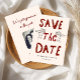 Ett lekfullt och modernt "spara datum"-kort med eget foto och en anpassningsbar QR-kod.