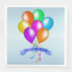 Denna pappra napkin är ljusblå med ett kluster av ljusa färgstarka ballonger i en mängd färg med matchande strömmande filter och en blå banderoll som med Grattis på födelsedagen.